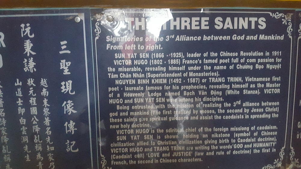 Interestingly, “…Adherents [of Caodaism] engage in practices such as prayer, veneration of ancestors, nonviolence, and vegetarianism with the goal of union with God and freedom from saṃsāra [the cycle of death and rebirth to which life in the material world is bound]….” You can read more on wikipedia
